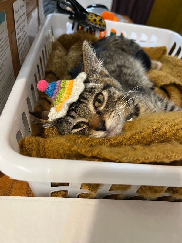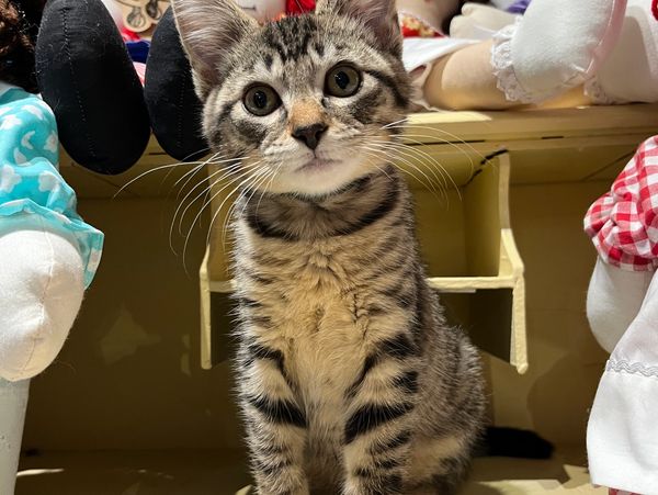 Lyra was a pregnant West Side stray when she was adopted in July of 2013. She came to live at the store in November of 2016. She retired to live as a pampered house cat in October of 2023.